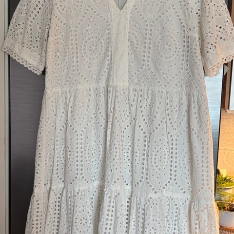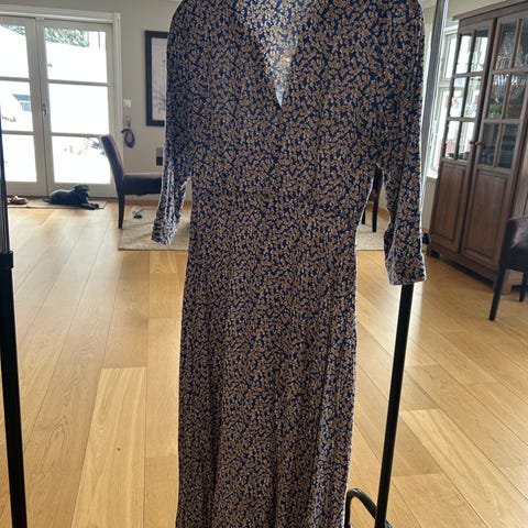 YAS sommerkjole for dame i størrelse M. Kjolen er blå med blomstermønster og er laget av polyester. Modellen har korte ermer og knelengde, med lett plissert skjørt og knytebelte i livet. Passer som sommerkjole til hverdagsbruk eller enkle anledninger.