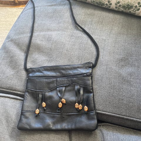 Liten svart veske med gulldetaljer
