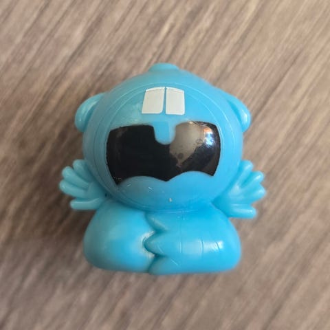 Denne lille blå figuren er Mc-Toy, karakter nummer 29 fra serie 1 av Gogo's Crazy Bones.
