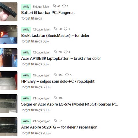 Ikke testet, selges til reparatører eller som deler.