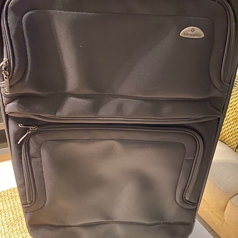 Kvalietskoffert som er brukt en god del, men som har mange turer igjen! Et stort hovedrom og separat rom i lokket. Utvendig er det 2 romslige lommer i front. 2 stødige bærestropper pp hhv topp og side og forsterkede hjørner.