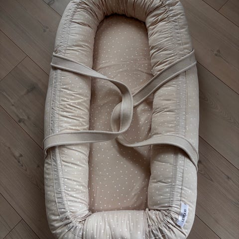 Dundyne + dunpute, sengetøy, pledd, kluter, bleier.