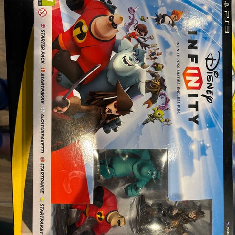 Disney Infinity startpakke spill til Playstation 3. Pakken inneholder Disney Infinity-spill til PS3, portal/base til figurer, flere figurer og noen power discs som kan brukes i spillet. Egnet for bruk med Playstation 3-konsoll for å spille med fysiske figurer som aktiveres i spillet via portalen.