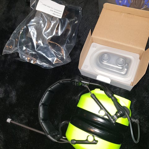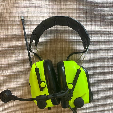 Modellen drives vanligvis av batterier (ikke synlig om følger med). Passer til bruk i for eksempel verksted, industri, bygg- og anleggsarbeid eller andre miljøer med høy støybelastning.