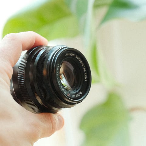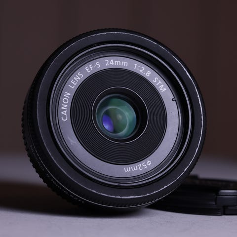 Canon 50mm F1.8 objektiv (nifty fifty). Fast brennvidde på 50mm. Dette egner seg godt til portretter, hverdagsfoto og situasjonsbilder. Passer til Canon-kameraer med RF-fatning.