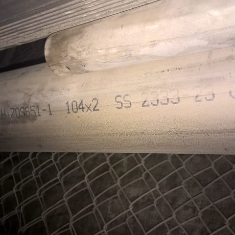 Rør Rustfritt (syrefast?) stål. ca.lengde 87cm.