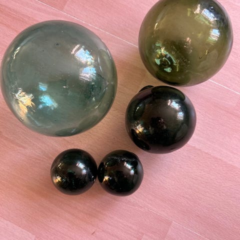 Fire garnkuler, noen kork og garnrester