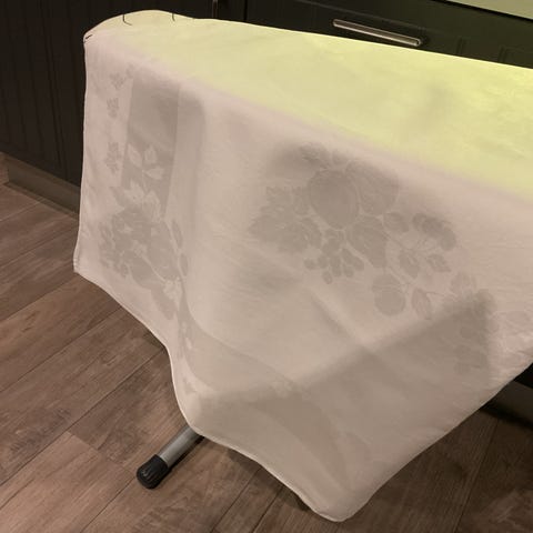Elegant duk med brodert mønster, pent brukt og uten flekker.