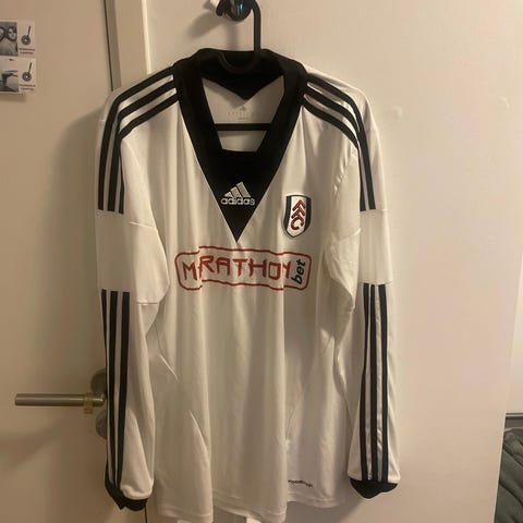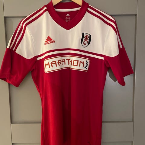 Adidas Fulham FC fotballdrakt i rød og hvit farge. Drakten har klubbemblem på brystet, Adidas-logo og sponsorlogo på fremsiden. Klassisk design med korte ermer og rund hals. Egnet til bruk på fotballbane, trening eller som supportereffekter for Fulham FC.