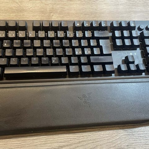 Den er got brukt med noen skraper og sitasje. RGB fungerer ikke, wierless mamgler USB, kommer med kabel.
