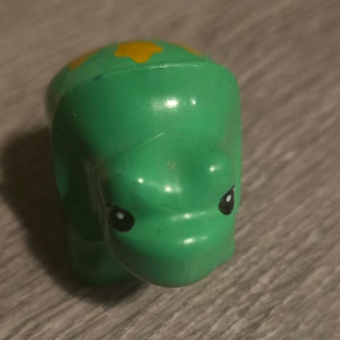 Dette er en grønn skilpaddeleke fra Fisher-Prices Little People-serie, som opprinnelig ble lansert som en del av settet "Floating Family" (modell nr. 411) på midten av 1970-tallet.
