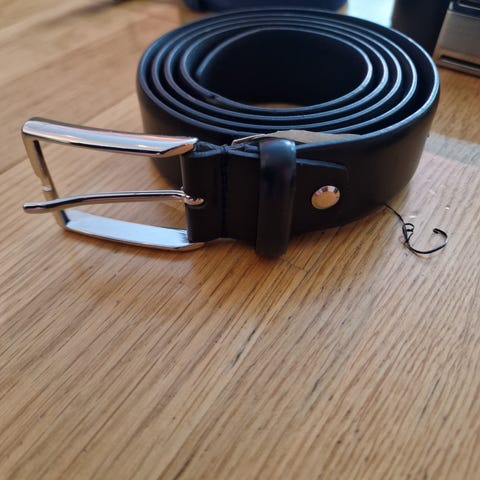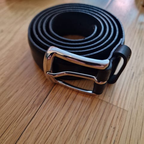 Belte for herre i svart farge. Klassisk modell med metallspenne og flere hull for justering av størrelse. Passer til hverdagsbruk og kan brukes både til bukser og jeans.