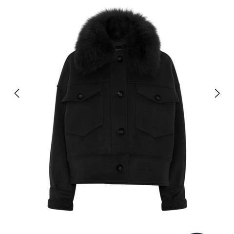 MEOTINE jakke for dame i størrelse S/M. Jakken er i ullmateriale med teksturert overflate og er grønnfarget. Den har frontknapper, to brystlommer med klaff og knapp, samt mansjetter med knapp. Jakken har kort, rett passform og stor krage med pelskant. Innsiden er helfôret for økt komfort. Passer som ytterjakke i overgangssesonger.
