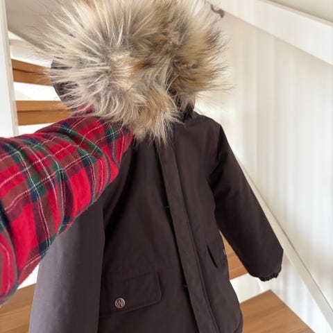 Pent brukt vinterjakke fra Wheat. Den har blitt litt nuppete bak i nakken men dette er ikke synlig når den er i bruk. Den har noen merker på magen, men den er såpass mørk i fargen at det ikke er veldig synlig.