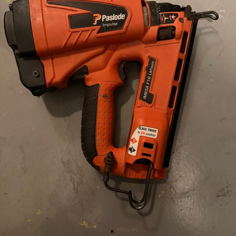 Spit Speed 55 Easy Click spikerpistol i plastkoffert. Verktøyet drives av oppladbart litiumbatteri, som er montert på håndtaket. Kofferten har formstøpt innredning til maskin, batteri og tilbehør. Egnet til festing skruer