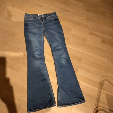 True Religion Becca jeans for dame i størrelse S med livvidde W27. Modellen er mid rise bootcut i lys blå denim. Buksen er laget hovedsakelig av bomull med noe polyester og elastan for stretch og komfort. Klassiske True Religion-detaljer med klafflommer og knappelukking bak. Passer til hverdagsbruk og kan kombineres med ulike topper og sko for både avslappede og mer pyntede antrekk.