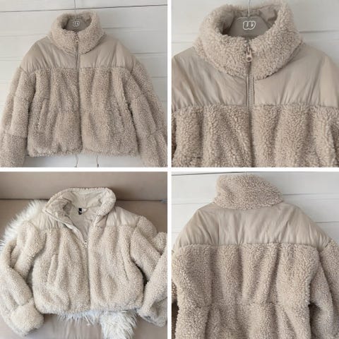 H&M Divided jakke for dame i størrelse XXL. Jakken er svart og laget i semsket skinnmateriale. Den har skrå glidelåslukking foran, glidelåslommer i sidene og glidelåsdetalj nederst på ermene. Ermene har ribbestrikket parti på undersiden for bedre passform og bevegelse. Passer som ytterjakke i overgangssesonger eller til hverdagsbruk.