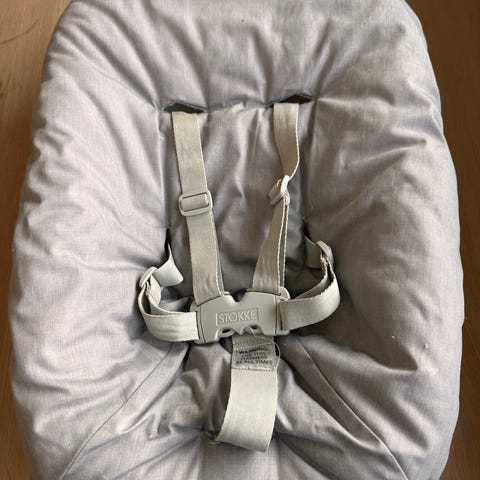 Godt brukt spebarn sete til Stokke tripp trapp stol. Er vasket jevnlig men malingsflekken ville ikke bort.