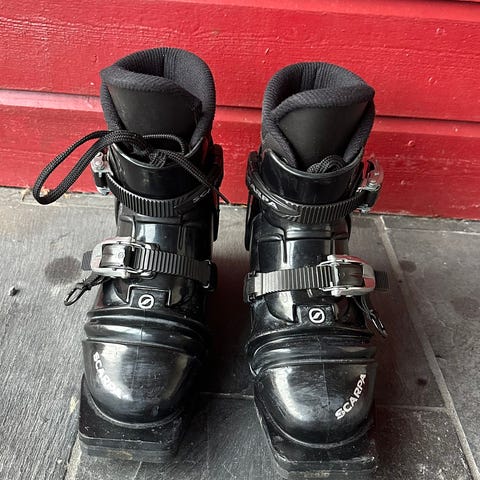Selger et par Scarpa T4 telemarkstøvler i str. 25.0 / 25.5 mondo (ca. EU 39–40).
