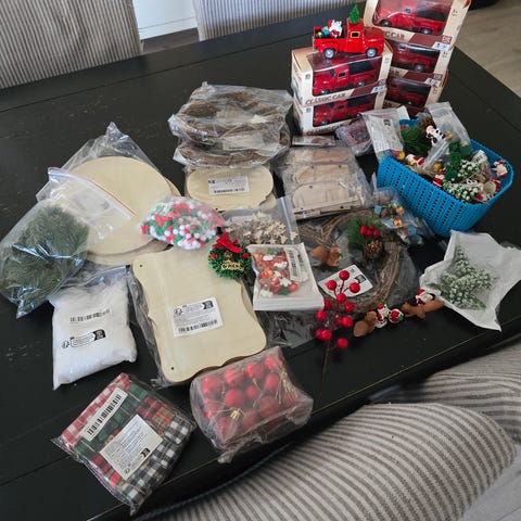 Matbokser, nøkkelring, potte, julekrans. Kaffekapsler osv