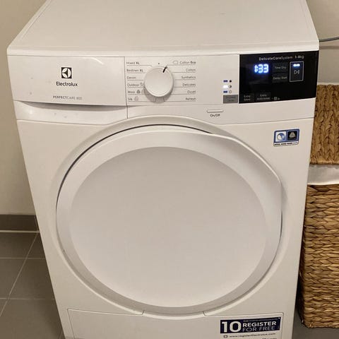 Electrolux PerfectCare 700 tørketrommel med kondens-teknologi. Frontmatet modell med GentleCare-system og kapasitet opp til 8 kg. Maskinen har elektronisk display med valg for blant annet tidsstyrt tørk og utsatt start, samt ekstrafunksjoner som ekstra skånsom tørk og antikrøll.