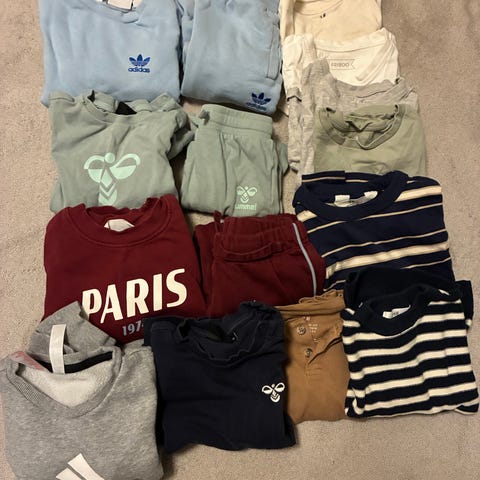 9 stk. collegegensere i str. 122/128 fra HM, en fra Hummel, en fra Spar Kjøp og en fra lager157. To av genserne har bruksmerker, se bilde.