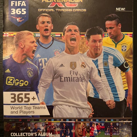 Enn perm med masse forskjellige fotballkort. Fotballkortene er inne i permen