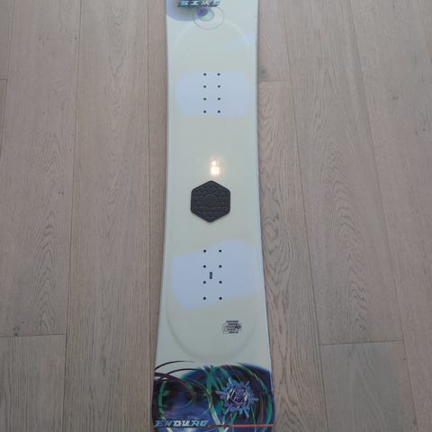 Sims snowboard med klassisk design i rødt og hvitt med striper. Brettet har monterte bindinger med justerbare stropper. Egner seg til vanlig kjøring i bakke. Lengde, bredde og mål på bindinger er ikke oppgitt og bør kontrolleres mot egen skostørrelse og høyde.