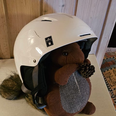 Bevel skihjelm i størrelse S i hvit farge. Hjelmen har justerbar hakereim og polstret innside for økt komfort. Flere ventilasjonsåpninger i toppen gir lufting under bruk. Brukt 2 ganger.