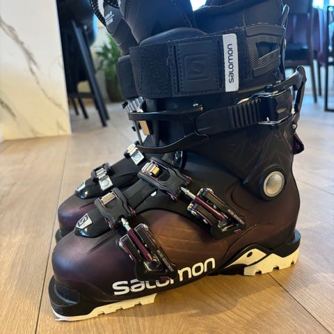 Salomon QST 80 alpinstøvler i størrelse 23/23,5 med sålelengde 275 mm. Støvlene er i hovedsak svarte med gule detaljer og spenner. Modellen har flere justerbare spenner og powerstrap øverst for bedre tilpasning rundt leggen. Egner seg til alpinbruk i vanlig alpinbinding. Passer for brukere som trenger en støvel i denne størrelsen og flexklassen.