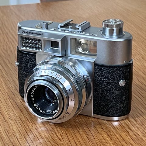 Voigtländer Brillant AF analog kamera. Testet og fungerer som det skal, inkludert blits. Vedlagt er et bilde, tatt med dette kameraet. Kameraet er i god stand og bruker to AA batterie og 35 mm film. Kameraet er fint og lager vakre bilder. Passer også for nybegynnere 😊