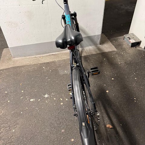 Sykkelen har normale bruksmerker etter vanlig bruk, men ingenting som påvirker funksjon. Batteriet holder godt, og lader følger selvfølgelig med også lås.