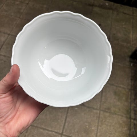 Bolle fra Egersund i fajanse. "Øvre Telemarken". Egersund Fajancefabriks Co. Dimensjoner: Høyde 7,3cm. Bredde 15cm. Hentes i Oslo.