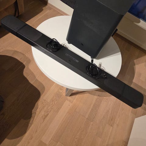 JBL soundbar med trådløs subwoofer og to bakhøyttalere i svart. Systemet består av en lang lydplanke for plassering under TV, en separat subwoofer for dypere bass og to mindre høyttalere som kan brukes som bakhøyttalere for surroundlyd. Egnet for bruk sammen med TV, film, spill og musikk i stue eller mediehjørne. Selges som ny og medfølger både kvittering og forsikring som gjelder ett år til tross for 5 års garanti. Denne koster 10990kr så dette vil være et knall kjøp prisen kan muligens diskuteres ved rask handel.