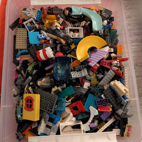 LEGO klosser blandet. Inneholder ulike typer og farger av LEGO-deler