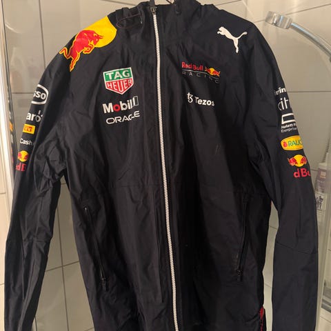 Red Bull Toro Rosso hettejakke for herre i størrelse S. Jakken er laget i bomull og har flerfarget design med hovedfarger i blått, mørkeblått og rødt. Den har hette, gjennomgående glidelås foran og sidelommer med glidelås. På bryst, ermer og rygg er det trykte og broderte logoer fra Red Bull, Toro Rosso, Honda og flere sponsorer. Passer som fritidsjakke eller supporterplagg til motorsport og Formel 1-relaterte arrangementer.
