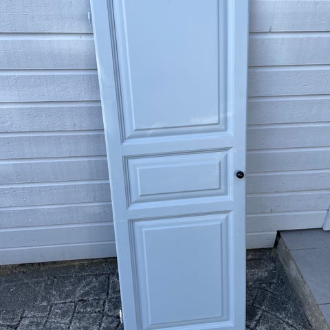 Eldre tredør med glassfelt. Gis bort mot henting. Dør er 90cm og glassfelt er 30cm. 120cm totalt. Høyde er 210 cm.