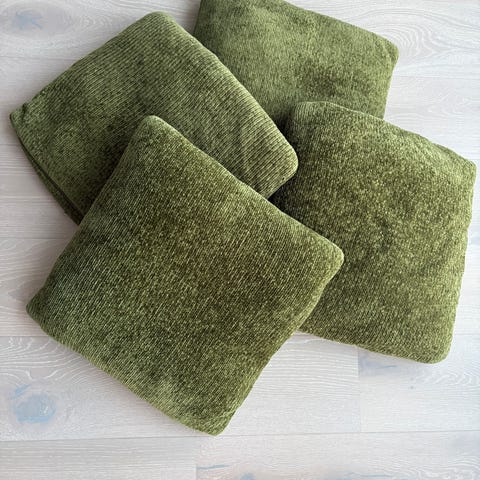 4 stk pynteputer (sofaputer) fra H&M selges samlet. Grått putetrekk som er flettet. Innleggsputer følger med.
