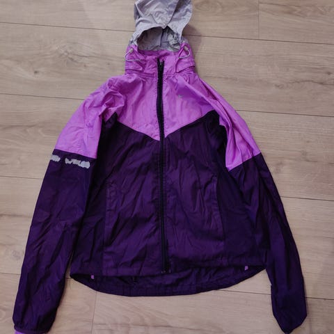 Selger Nike løpejakke i str M. Jakken er pent brukt. Det er glidelås på lommene, innstramming i hette og ved hofter.