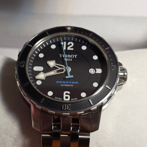 Selger en meget pen og lite brukt Tissot Seastar 1000 Powermatic 80 med den populære turkise skiven. Klokken fremstår som svært pen, kun normale, lette bruksmerker på lenke.