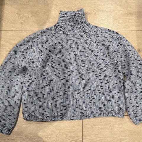 Helt ny hjemmestrikket genser. Nydelig gul farge. Mønster fortune sweather fra petit knit med lang arm. Strikket i Dale lace kid mohair. Str L. Lagt inn tynn strikk i vrangbord nederst for bedre passform. Denne kan fint fjernes. Selges da den ble for stor for meg. Garnpris 979,-. 63 cm over brystet, 66 cm lang. Er en litt oversize modell.