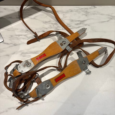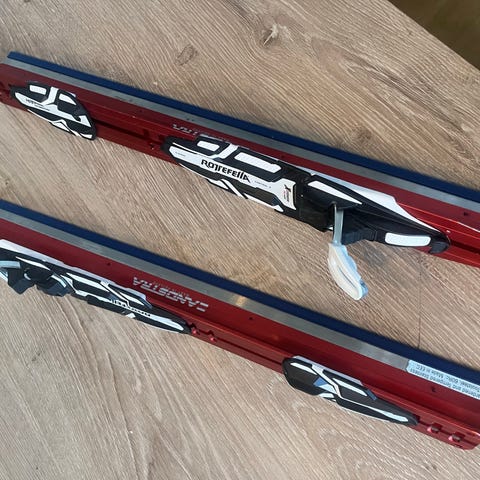 Pent brukte langturskøyter med binding for fjellsko. 47 cm lange. Kan sette på ønsket skibinding. Ny pris 3400kr uten binding. Holdes sammen med spesialreimer for skånsom oppbevaring og transport