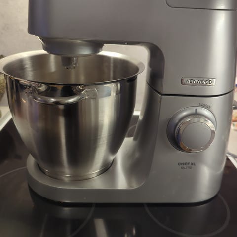 Kenwood kjøkkenmaskin på 1200W i grå utførelse med bolle i rustfritt stål. Maskinen har trinnløs hastighetsregulering på siden. Medfølgende tilbehør inkluderer visp, K-spade og deigkrok, samt sprutbeskytter og bruksanvisning. Egnet til elting av deig, pisking og røring ved matlaging og baking på kjøkkenet.