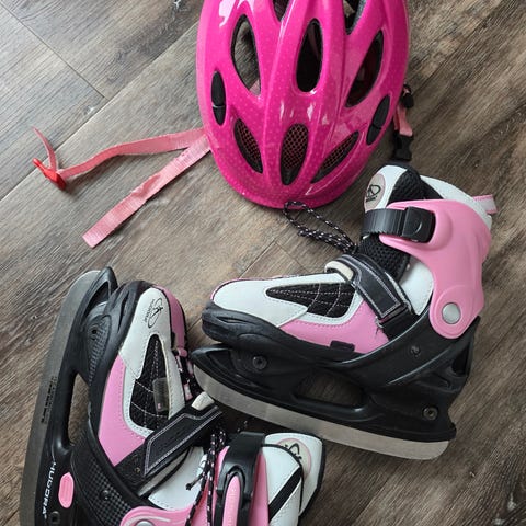 Følger også med et sett rosa beskyttelsesputer for knær.