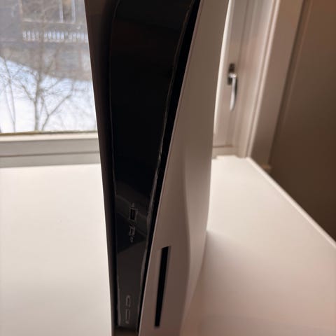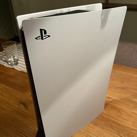 Sony PlayStation 5 spillkonsoll. Hjemmekonsoll for TV-spill med støtte for moderne PlayStation 5-spill og tilkobling av trådløs kontroller. Egnet for bruk i stue eller spillrom. Konsollen kan brukes til både fysiske og digitale spill, avhengig av modell og tilkobling til internett for nedlasting og oppdateringer.