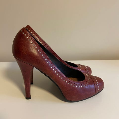 Miu Miu hæler brun skinn str. 39 med nagler