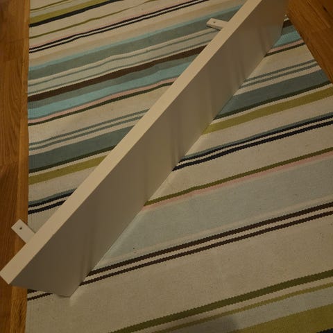 Vegghylle i tre. Hyllen er malt hvit og har en enkel konsollkonstruksjon. Egner seg til montering mot vegg for oppbevaring eller plassering av mindre gjenstander. Materiale: treverk. Farge: hvit.