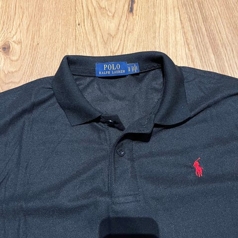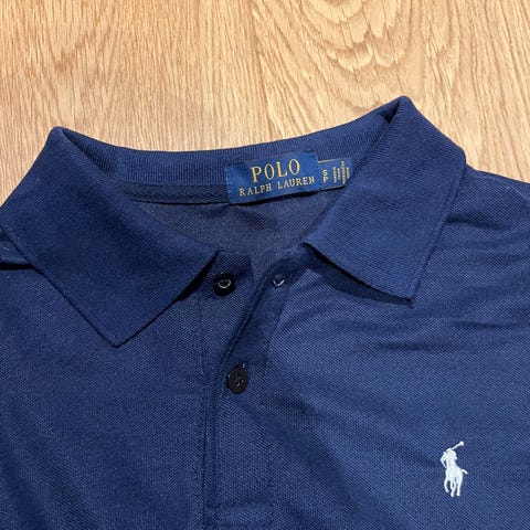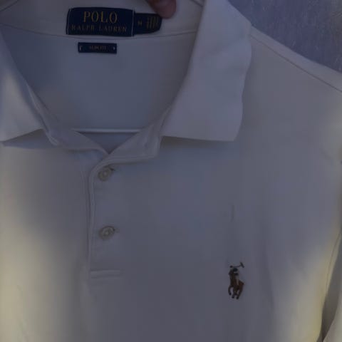 Selger en hvit Polo Ralph Lauren polo med mørk logo på brystet. Enkel og tidløs modell som passer til mye.