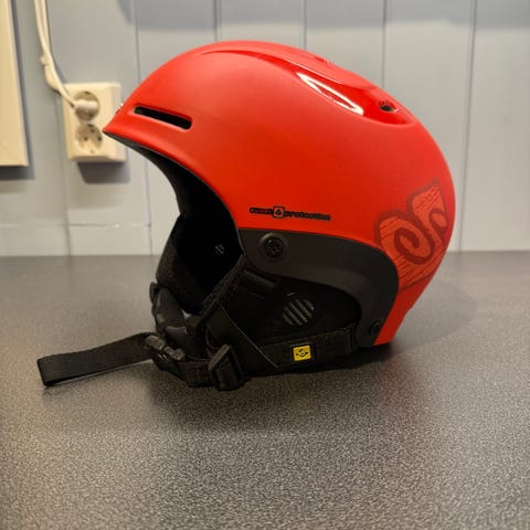 Sweet Protection Trooper skihjelm i oransje farge. Hjelmen har flere ventilasjonsåpninger og justerbar rem under haken. Ytterskall i hardt materiale med integrerte luftventiler og grafisk logo på siden. Egnet som skihjelm eller snowboardhjelm for bruk i alpinbakke. Størrelses- og sikkerhetsinformasjon står på etiketten bak på hjelmen.