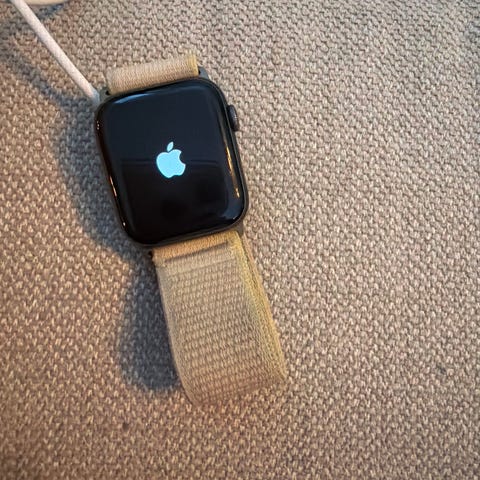 Apple Watch smartklokke i svart med reim i s/m i silikon. Noen små riper på skjerm, ellers god som ny:) følger med lader.